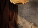 King is een majestueuze kroonluchter van aanzienlijke afmetingen die de grenzen tussen kunst en design overschrijdt. King is opgebouwd uit individuele, geborstelde metalen bladen die met de hand zijn gevouwen, taps toelopend gemaakt en geborsteld om meerdere gelaagde ringen te creëren. Elke ring verbergt een subtiele gloed die de gouden bladen omhult en schaduwen en licht werpt. King is een sculptuur op zich en werd oorspronkelijk ontworpen naar het personage van de koning van Salem uit het boek ‘De Alchemist’ en de legende van Koning Arthur, vandaar de kroonachtige vorm. De middeleeuwse kenmerken zijn versmolten met een vleugje brutalisme, waardoor King indrukwekkend is wanneer het licht gedimd is en schitterend wanneer het verlicht is.